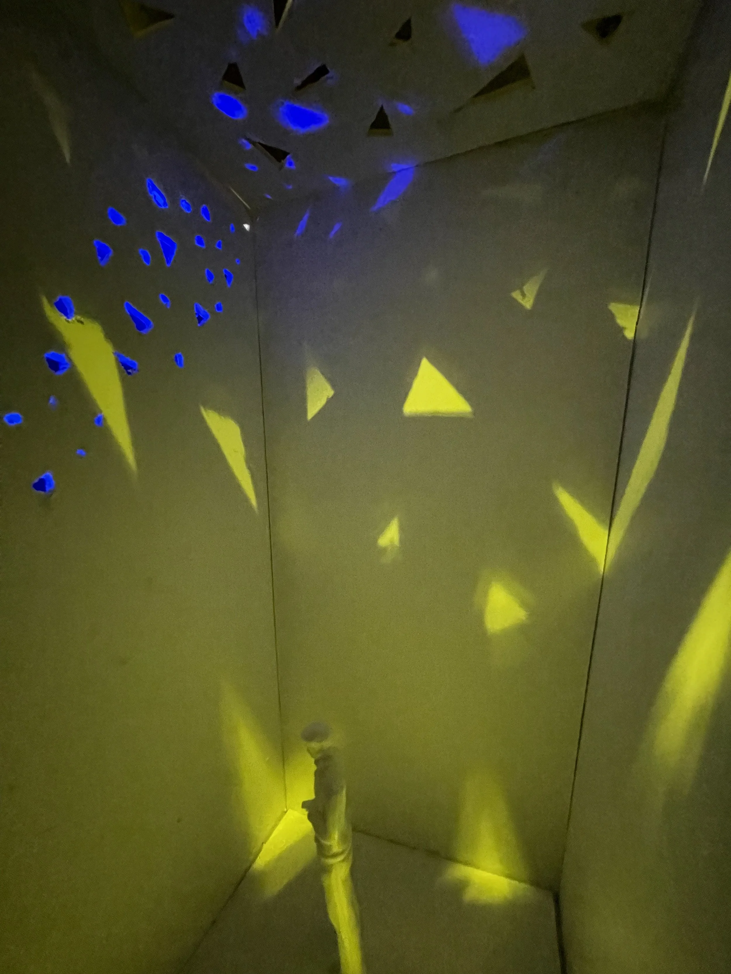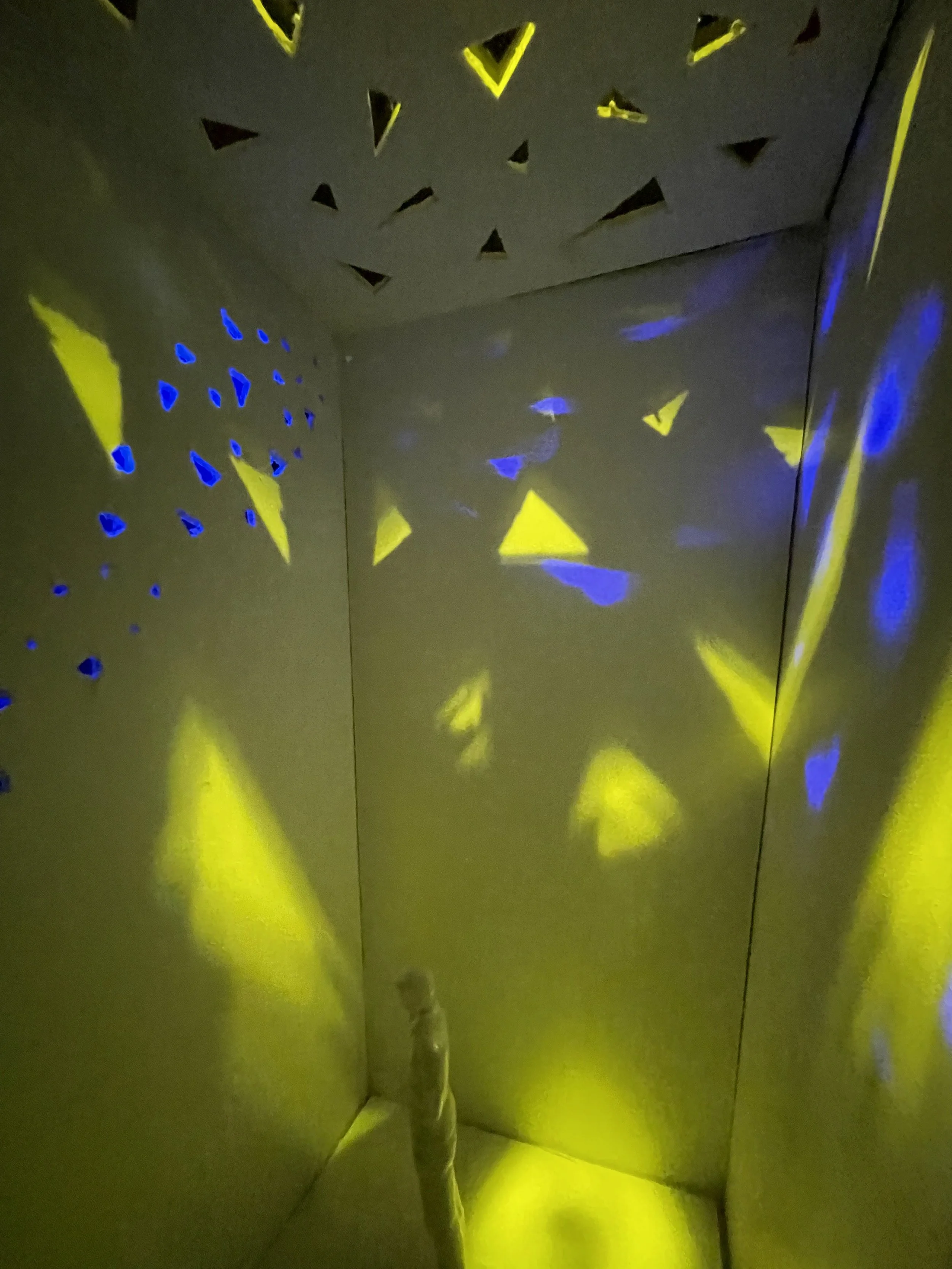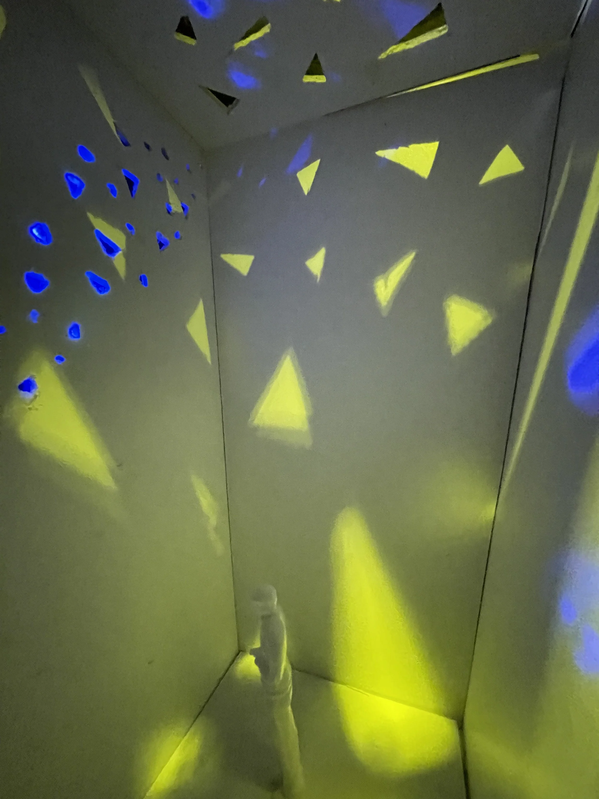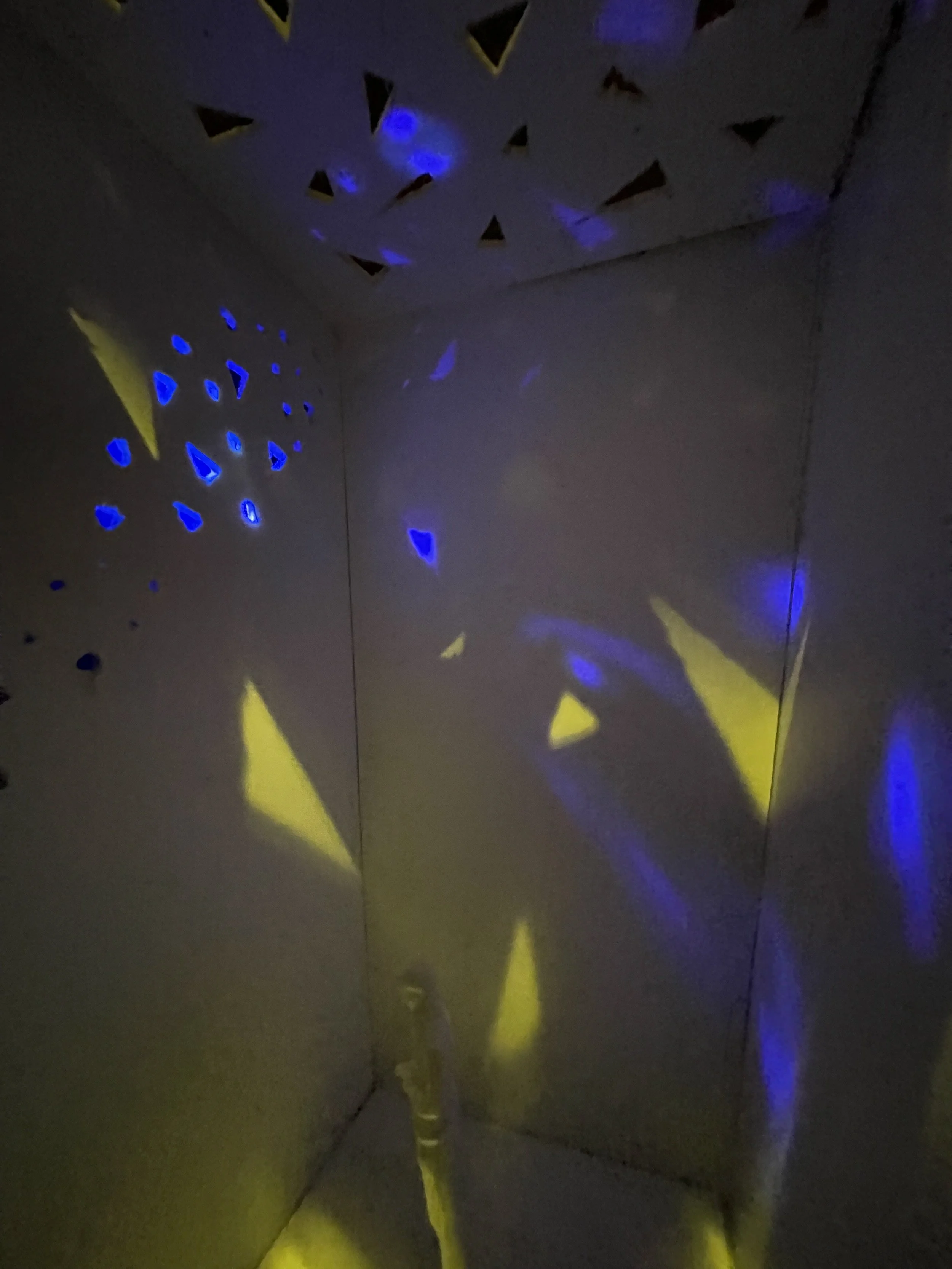 Inspired by Yayoi Kusama, a Japanese artist known for her colorful artwork and mirror illusions, I set out to create special rooms using lighting, shadows, and photography. The project challenged us to experiment with everything we had learned and to create rooms that were both aesthetically pleasing and functionally effective.