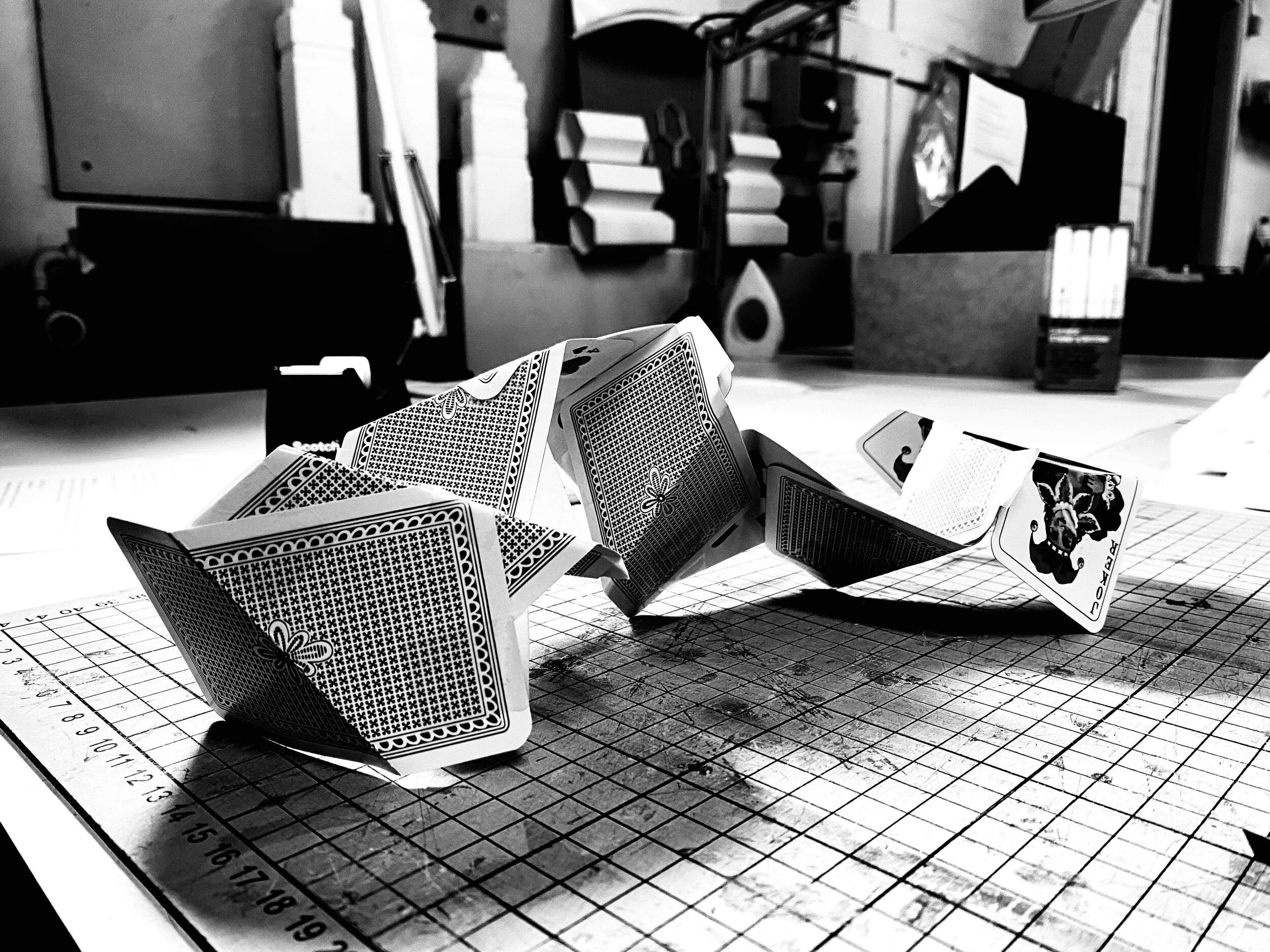 At The Scandinavian design collage we had a very busy week solving 1-2 mock-entrance exams each day in order to improve on skills in modelmaking, Drawing and time-management for entrance exams. One of the days we were supposed to use a deck of cards to create a model. After the model was made, we had to draw it and then present it inside a 5-hour window.